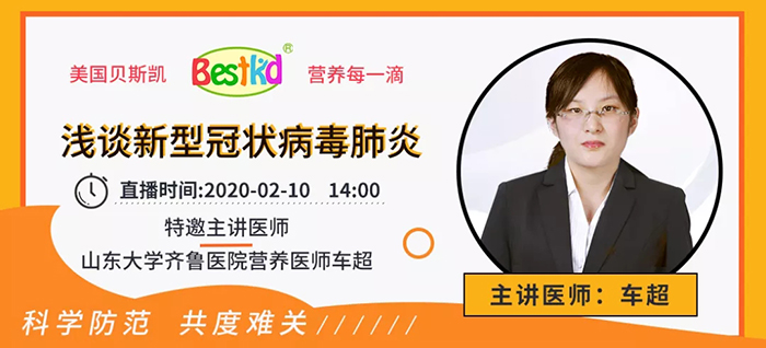 在直播活動中,2月10日,貝斯凱特邀山東大學齊魯醫(yī)院車超醫(yī)師與父母們淺談新型冠狀病毒肺炎;2月12日,北京協(xié)和醫(yī)院王丹華教授分享《疫情期間 如何照顧寶寶》;2月14日,北京京都兒童醫(yī)院副教授劉虹帶來《抗病毒期間合理飲食提高免疫力》。